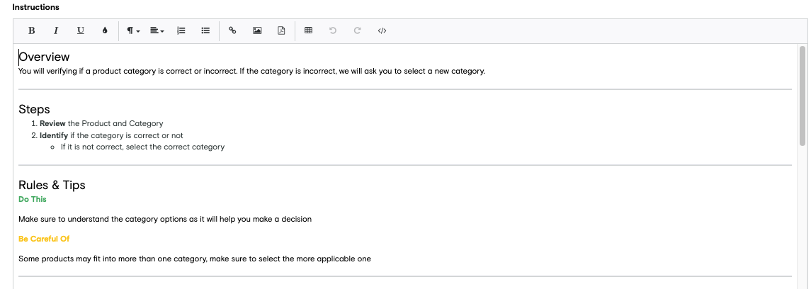Enter the instructions of your job in this field. Refer to Instructions Best Practices to help you write the best instructions possible as well as learn how to embed media to enhance the contributor experience and streamline your processes.